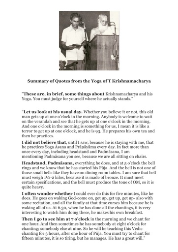 Summary of Quotes from the Yoga of T Krishnamacharya